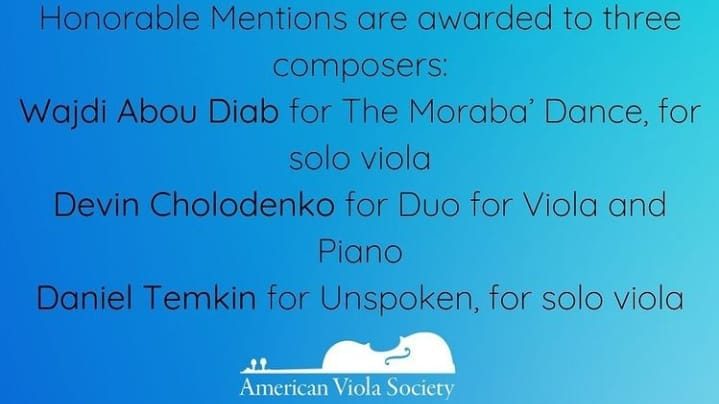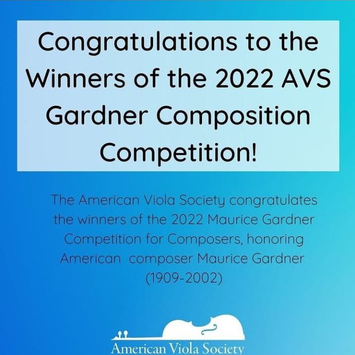 Received an “HONORABLE MENTION” from the Gardner Music Composition Competition 2022, by the American Viola Society