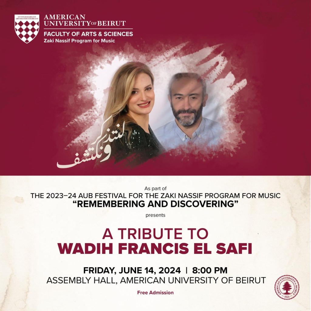 The release concert took place in the Assembly Hall, in the American Uneversity of Beirut, on 14 June 2024, performed by pianist Chantal Francis Menassa and oud player Afif Merhej, in honor of Wadih Al-Safi’s art and legacy, and more specifically, shedding light on his talent as a songwriter and not just a singer.