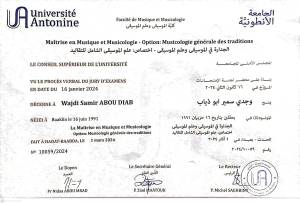 Wajdi Samir Abou Diab, a Lebanese composer, musicologist, and educator from the Middle East, draws inspiration from his dual cultural background in Arabic Levantine and Western classical music. Born in Lebanon in 1991, he graduated from the Lebanese National Higher Conservatory of Music (LNHCM) with diplomas in Piano and Music Composition. He studied with Elia Koussa and Joelle Khoury for composition, Jad Riashi for harmony, Jamal Boul-Hosn for electronic music, Sevag Derghougassian and Janna Popkova for Piano, and Irina-Elena Balanota for Bassoon. Additionally, Wajdi is an alumnus of VIPA in València, Spain (2024), SÄVELLYSPAJA in Provoo and Helsinki, Finland (2024), EAMA in Paris, France (2023), Re.Music Academy in Moscow, Russia (2023), Plucomp in French Compte, France (2023), Puccini International Opera course in Lucca, Italy (2021), and YES Academy in Lebanon (2019-2021). Wajdi graduated with a Master’s degree in Musicology from Antonin University under the supervision of Professor Nidaa Bou Mrad.
